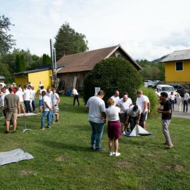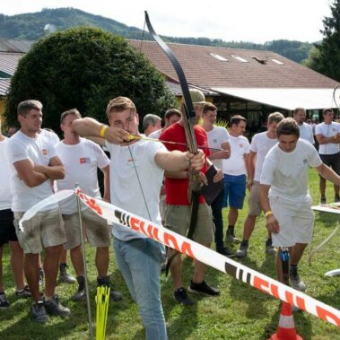 Anstatt im Sitzen mehr oder weniger spannende Berichte der Geschäftsführung anzuhören, mussten die MitarbeiterInnen selber anpacken. Aus dem anfänglichen „müssen“ wurde sehr rasch ein „dürfen“ – vier Teambuilding-Spiele forderten die per Los zusammengestellten Gruppen auf abwechslungsreiche Weise. Bei Bogenschießen, Traffic-Jam, Fliegender Teppich und Wikinger-Schach waren unterschiedliche Talente und vor allem gemeinsame Lösungsfindung gefragt.