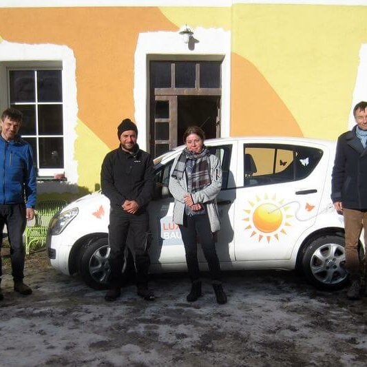 Geschenk unseres Stromos an Emmaus Lilienfeld Erst war der Stromos (Elektroauto, 70.000km gefahren) noch Teil der eben stattfindenden Teambesprechung…. …doch gleich danach wurde er vom Schmetterling zur „E-Maus“! Emmausgemeinschaft Lilienfeld…